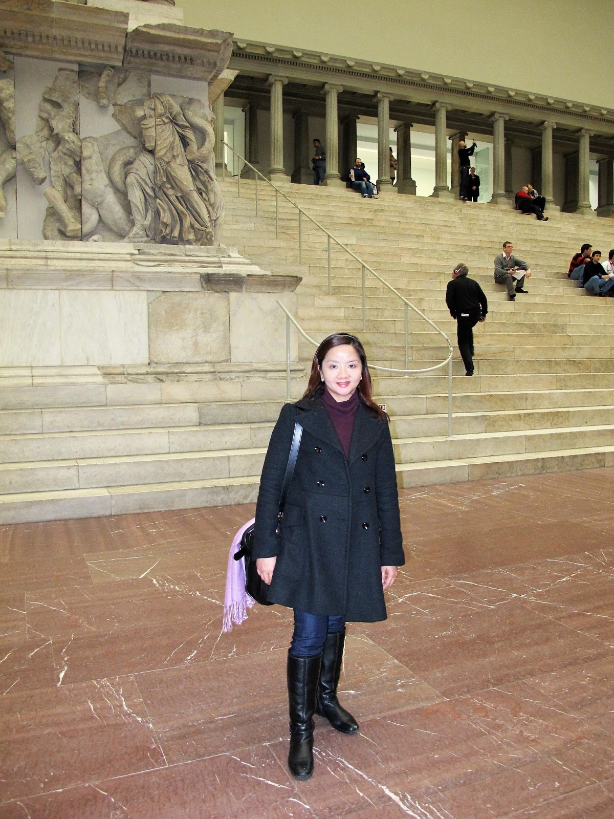 First stop, Neues Museum... which displayed the Nefertiti bust of the most beautiful woman of ancient Egypt. Also inside the Neues Museum were the excavated jewels of Helen of Sparta of ancient Troy. Second stop, Pergamon Museum... where hubby and I got to walk up the steps to Pergamon Altar of the ancient city of Pergamon, pieced together inside the museum, occupying an entire length of Pergamon hall. Past the Pergamon Altar was Ishtar Gate to the inner city of ancient Babylon, the bricks decorated with dragons, lions and bulls. Third stop, Alte Nationalgalerie... where this particular painting, titled "Frederick the Great's Flute Concert at Sanssouci," gave me an idea of a possible day trip to Potdam's Sanssouci, from Berlin.